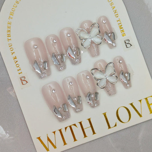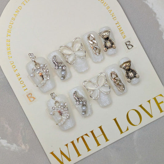 White Moon Butterfly - Press on Nails