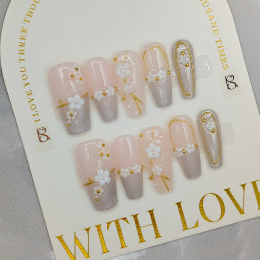 Silver valley flower - Press on Nails