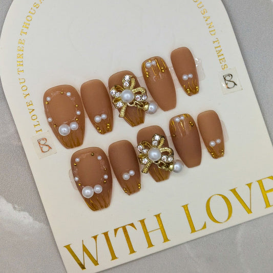 SAVE 15%Pearls with Gold- Press on Nails